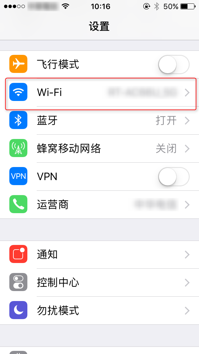 2. 点击 “ Wi-Fi ” 进入 Wi-Fi 列表选择可用 Wi-Fi